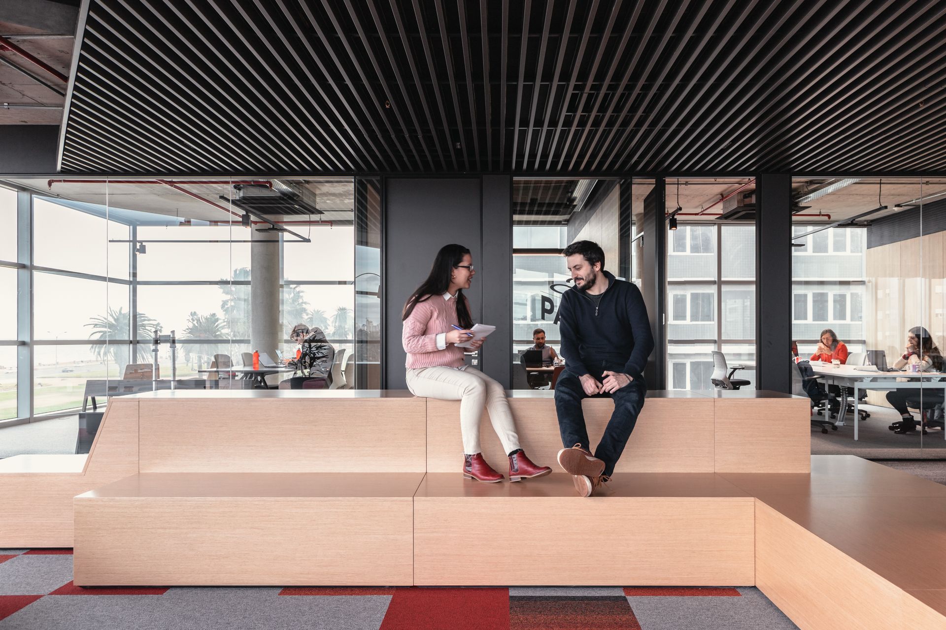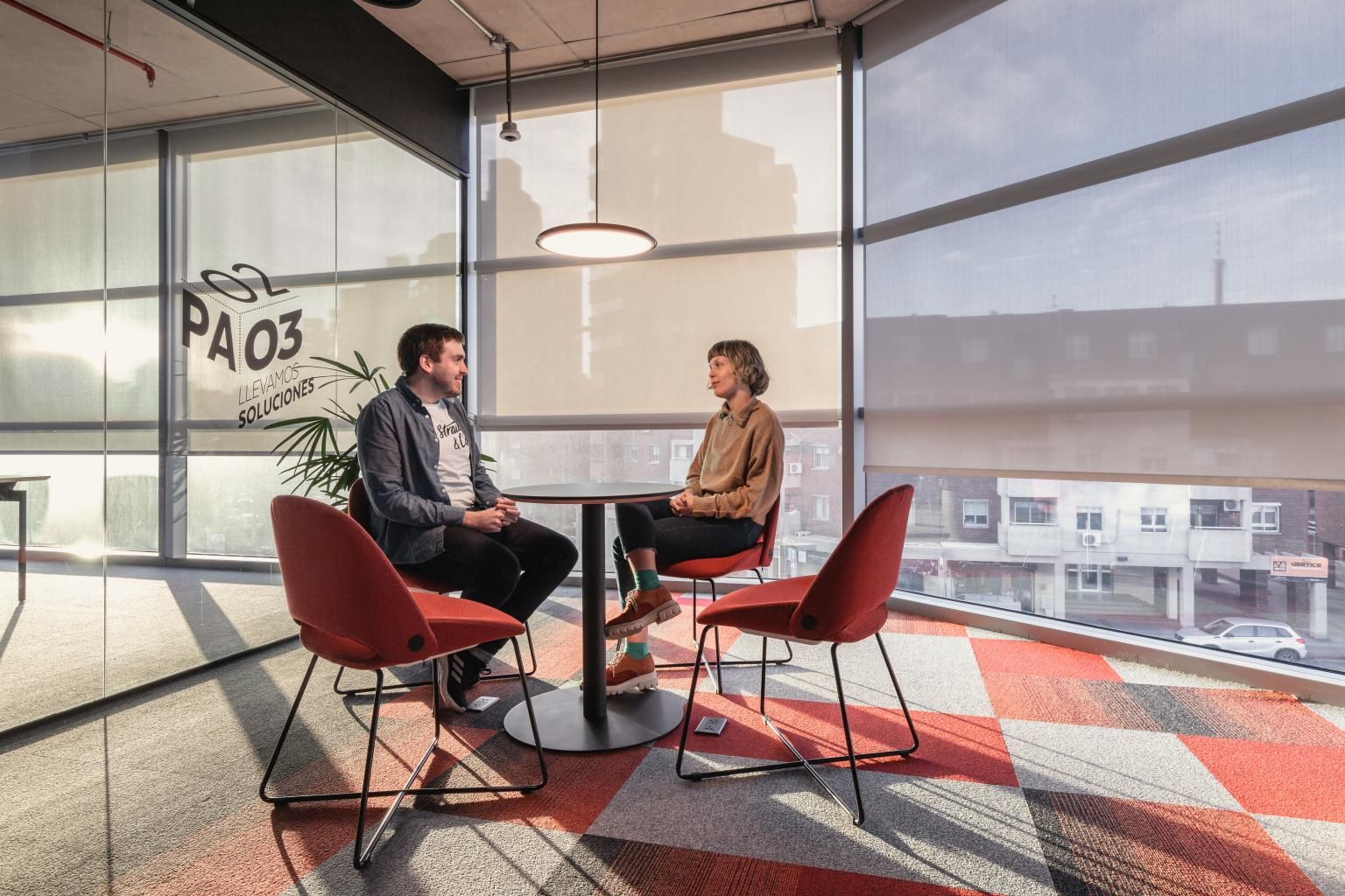 Divisorias y revestimientos Sitab. Sillas Flexform y Enea. Sillones, esperas, taburetes y pouffs Sunon. Equipamiento para exterior Enea. Piso técnico sobreelevado TMS Steel Floor.