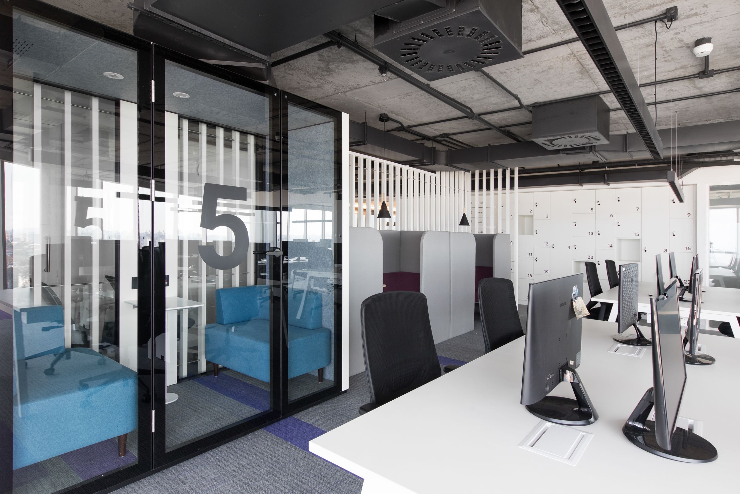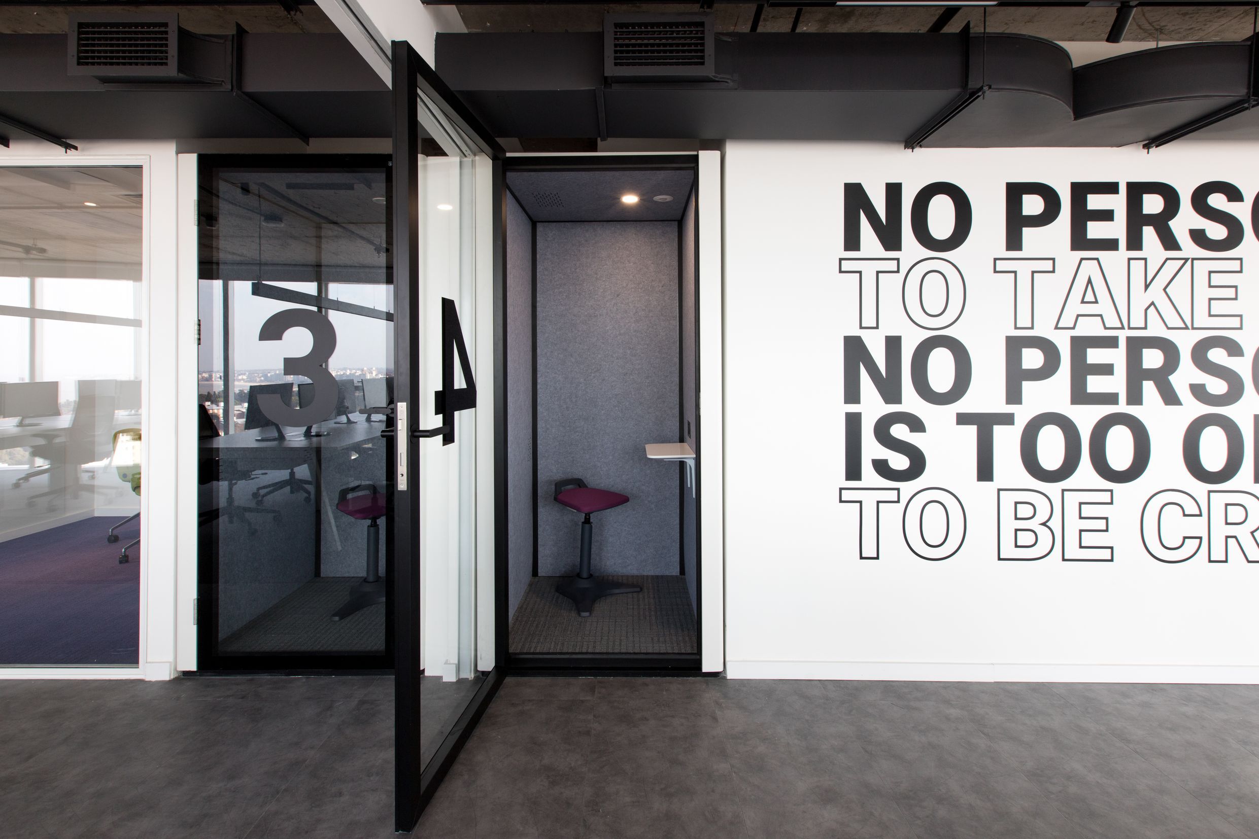 Alfombra modular y pisos vinílicos LVT: MILLIKEN FLOORS. Cabinas acústicas phone booths: SUNON. Sillas para salas de reuniones, areas de espera SUNON. Mesas, sillas y taburetes para Cafeteria y esperas informales: ALBERFLEX